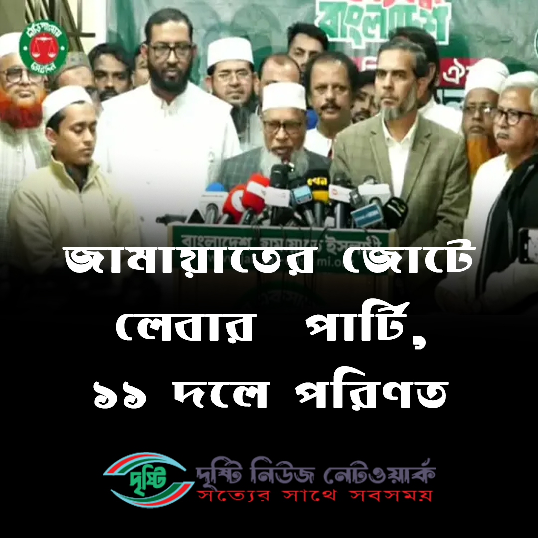ত্রয়োদশ জাতীয় নির্বাচন সামনে রেখে জামায়াত নেতৃত্বাধীন জোটে যোগ দিয়েছে ‘বাংলাদেশ লেবার পার্টি’। এর ফলে জোটটি ১১ দলীয় জোটে পরিণত হলো। শনিবার (২৪ জাত্রয়োদশ জাতীয় নির্বাচন সামনে রেখে জামায়াত নেতৃত্বাধীন জোটে যোগ দিয়েছে ‘বাংলাদেশ লেবার পার্টি’। এর ফলে জোটটি ১১ দলীয় জোটে পরিণত হলো। শনিবার (২৪ জানুয়ারি) সন্ধ্যা ৭টায় জামায়াতের মগবাজারের কেন্দ্রীয় কার্যালয়ে আয়োজিত এক সংবাদ সম্মেলনে লেবার পার্টিকে জোটে যুক্ত করার এই তথ্য জানান জামায়াতের সহকারী সেক্রেটারি জেনারেল ও দলের নির্বাচন পরিচালনা কমিটির আহ্বায়ক এ টি এম মা’ছুম। এসময় লেবার পার্টির চেয়ারম্যান মোস্তাফিজুর রহমান ইরান, জামায়াতে সহকারী সেক্রেটারি জেনারেল ও দলের মিডিয়া বিভাগের প্রধান এহসানুল মাহবুব জুবায়েরসহ জোটের নেতারা উপস্থিত ছিলেন।নুয়ারি) সন্ধ্যা ৭টায় জামায়াতের মগবাজারের কেন্দ্রীয় কার্যালয়ে আয়োজিত এক সংবাদ সম্মেলনে লেবার পার্টিকে জোটে যুক্ত করার এই তথ্য জানান জামায়াতের সহকারী সেক্রেটারি জেনারেল ও দলের নির্বাচন পরিচালনা কমিটির আহ্বায়ক এ টি এম মা’ছুম।