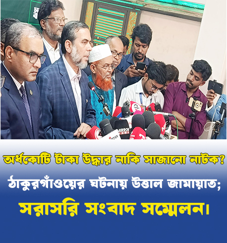 অর্ধকোটি টাকাসহ ঠাকুরগাঁও জেলা জামায়াতের আমিরের আটক হওয়ার ঘটনাকে আইনশৃঙ্খলা বাহিনীর সাজানো নাটক বলে মন্তব্য করেছেন জামায়াতে ইসলামীর কেন্দ্রীয় সহকারী সেক্রেটারি জেনারেল এহসানুল মাহবুব জোবায়ের।
