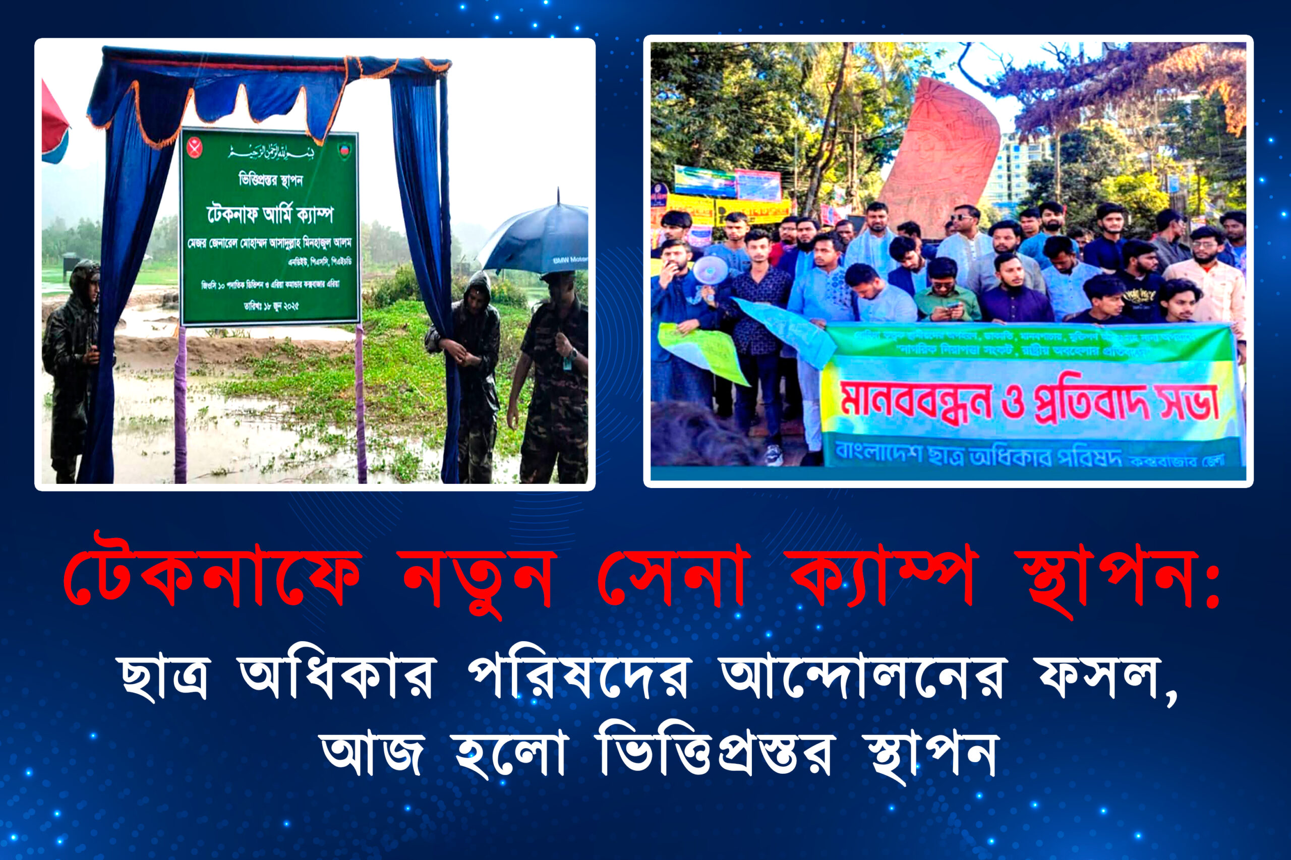 আজ ১৮ জুন এই গুরুত্বপূর্ণ সেনা ক্যাম্পের ভিত্তিপ্রস্তর স্থাপনের মধ্য দিয়ে টেকনাফের নিরাপত্তা ও আর্থ-সামাজিক উন্নয়নে এক নতুন অধ্যায়ের সূচনা হলো। এই সাফল্য মূলত তরুণ ছাত্রসমাজের অদম্য সাহস, প্রত্যয় এবং আন্দোলনের ফল, যা নিঃসন্দেহে ভবিষ্যতের যেকোনো জনদাবির আন্দোলনে অনুপ্রেরণা যোগাবে।