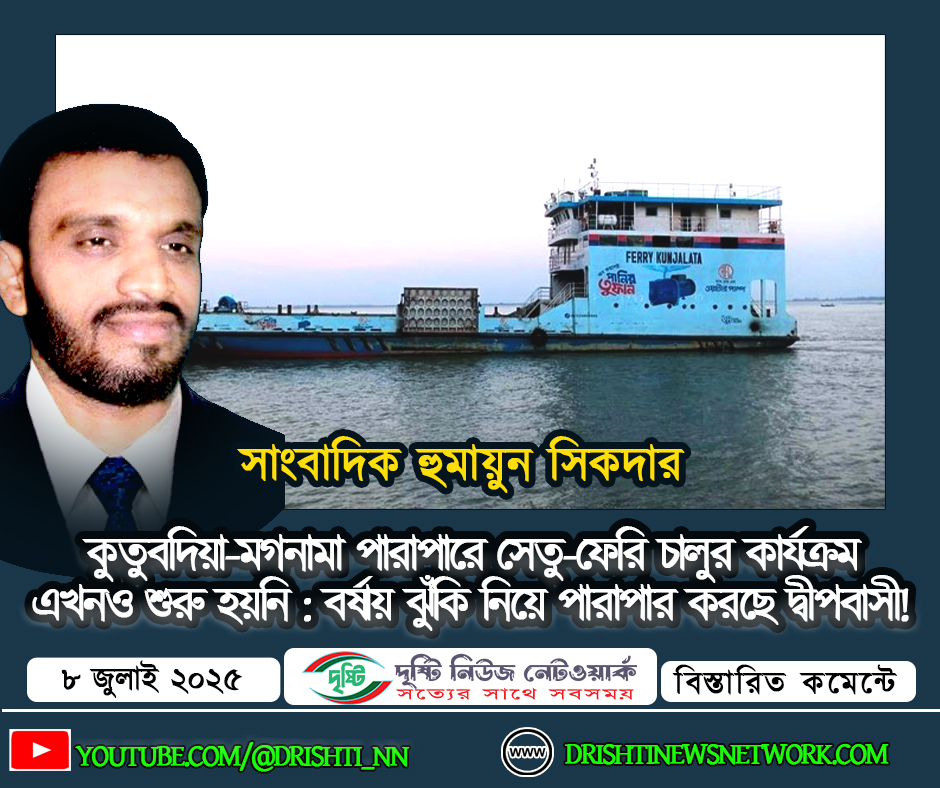 কুতুবদিয়া-মগনামা পারাপারে সেতু-ফেরি চালুর কার্যক্রম এখনও শুরু হয়নি: বর্ষায় ঝুঁকি নিয়ে পারাপার করছে দ্বীপবাসী! উপজেলা জুলাই ৮, ২০২৫নিউজ ডেস্কLeave a Comment on কুতুবদিয়া-মগনামা পারাপারে সেতু-ফেরি চালুর কার্যক্রম এখনও শুরু হয়নি: বর্ষায় ঝুঁকি নিয়ে পারাপার করছে দ্বীপবাসী! জেলার কুতুবদিয়া দ্বীপবাসীর বহুল প্রত্যাশিত মগনামা-কুতুবদিয়া পারাপারে সেতু – ফেরি সার্ভিস চালুর কার্যক্রম এখনো দৃশ্যমানভাবে শুরু হয়নি। ফলে প্রতিবছরের মতো এবারও বর্ষা মৌসুমে চরম ঝুঁকি ও দুর্ভোগ নিয়ে চলাচল করতে বাধ্য হচ্ছেন দ্বীপের দেড় লক্ষাধিক বাসিন্দা। বর্তমানে কুতুবদিয়া উপজেলা থেকে মূল ভূখণ্ডের মগনামা ঘাটে যাতায়াতের একমাত্র মাধ্যম হচ্ছে ইঞ্জিনচালিত ট্রলার ( ডেনিস বোট), স্পীড বোট তথা ছোট নৌযান, যা বর্ষাকালে জীবন ঝুঁকিপূর্ণ হয়ে ওঠে। প্রবল ঢেউ, দমকা হাওয়া ও নিম্নমানের যাত্রাবাহী নৌযানে করে প্রতিদিনই সাধারণ যাত্রী, রোগী ও ব্যবসায়ীদের বিপদের মধ্যে পড়তে হয়। স্থানীয়দের অভিযোগ: দ্বীপবাসীদের দাবি, দীর্ঘদিন ধরে কুতুবদিয়া-মগনামা সংযোগ সেতু নির্মাণ এবং ফেরি সার্ভিস চালুর দাবিকে আমলে নিয়ে সংশ্লিষ্ট কতৃপক্ষ সার্ভে করে । কিন্তু বাস্তবায়নে নেই কোনো দৃশ্যমান অগ্রগতি। শুধুমাত্র জরিপ ও প্রাথমিক কাগজপত্রের কাজেই সীমাবদ্ধ যেনো না থাকবে তার জন্য দৃষ্টি আকর্ষণ করেন সংশ্লিষ্ট মহল। একজন স্থানীয় বাসিন্দার বলেন: “ফেরি চালুর কোনো কাজ শুরু হয়নি। বর্ষা এলেই বুঝি আমরা কতটা অবহেলিত।” সেতু – ফেরি চালু হলে—- যাত্রী ও পণ্য পরিবহনে নিরাপত্তা ও সময় বাঁচবে, পর্যটন, শিক্ষা ও স্বাস্থ্যসেবায় গতি আসবে, কুতুবদিয়ার লবণ ও মাছ শিল্প মূল ভূখণ্ডে সহজে পৌঁছাতে পারবে। দুর্যোগকালেও জরুরি সহায়তা পৌঁছানো সহজ হবে। দ্বীপবাসীর দাবি: অবিলম্বে কুতুবদিয়া-মগনামা ফেরি সার্ভিস চালু – সংযোগ সেতুর নির্মাণকাজ শুরু করতে হবে। এ দাবিতে প্রশাসন ও সংশ্লিষ্ট কর্তৃপক্ষের দৃষ্টি আকর্ষণ করছেন দ্বীপবাসী।