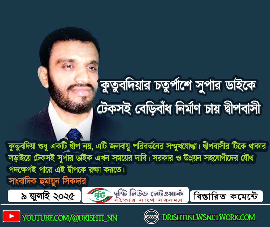 কুতুবদিয়া শুধু একটি দ্বীপ নয়, এটি জলবায়ু পরিবর্তনের সম্মুখযোদ্ধা। দ্বীপবাসীর টিকে থাকার লড়াইয়ে টেকসই সুপার ডাইক এখন সময়ের দাবি। সরকার ও উন্নয়ন সহযোগীদের যৌথ পদক্ষেপই পারে এই দ্বীপকে রক্ষা করতে।