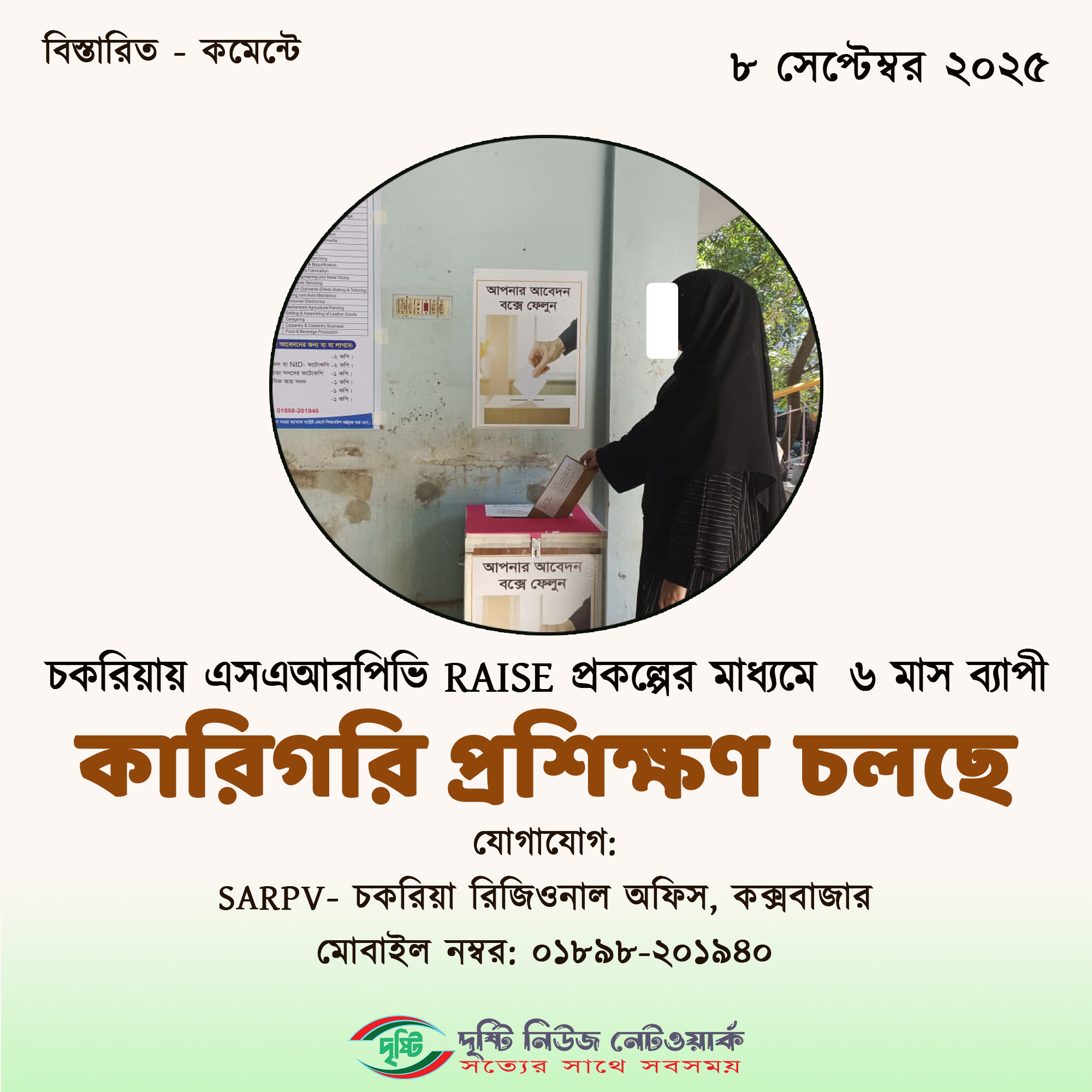 ”ছোটো উদ্যোগে মানব-সক্ষমতার বিকাশ”—এই স্লোগানকে সামনে রেখে কক্সবাজারের চকরিয়ায় শুরু হয়েছে SARPV-RAISE প্রকল্পের অধীনে এক যুগান্তকারী প্রশিক্ষণ কার্যক্রম। এই প্রকল্পের মূল লক্ষ্য হলো, তরুণ সমাজকে শুধুমাত্র কারিগরি দক্ষতায় নয়, বরং জীবন ও কর্মক্ষেত্রের জন্য পুরোপুরি প্রস্তুত করে তোলা। PKSF-এর আর্থিক সহযোগিতায় পরিচালিত এই প্রকল্পে ৬ মাসব্যাপী হাতে-কলমে কারিগরি প্রশিক্ষণের পাশাপাশি দেওয়া হচ্ছে ৫ দিনের জীবন দক্ষতা উন্নয়ন প্রশিক্ষণ।